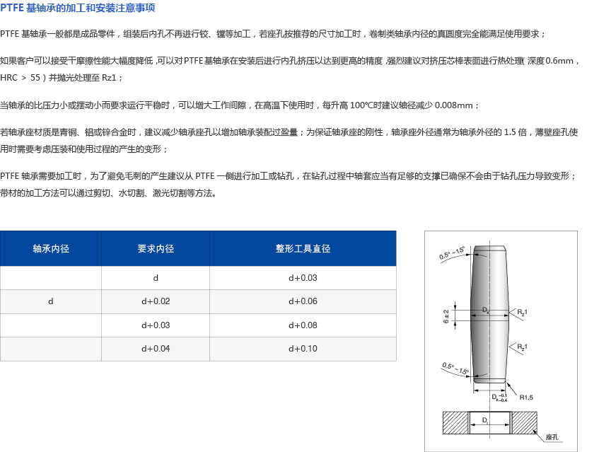 PTFE基軸承的加工和安裝注意事項(xiàng)